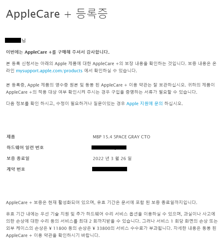 지금부터는 맥북이나 아이폰 등 애플제품의 애플케어+가입을 위해 내가 대행했던 업체의 진행결과를 공유하고자 하니 필요한 사람만 읽어보긴 권한다.